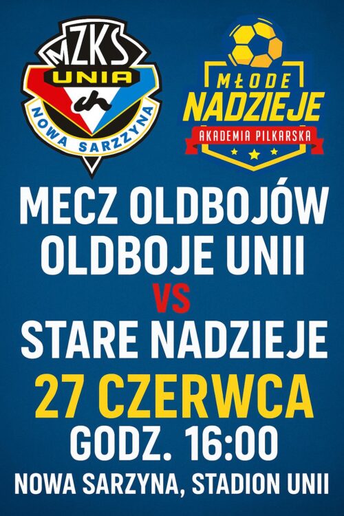W trakcie Pikniku Rodzinnego na zakończenie sezonu 2024/2025 na stadionie Unii odbędzie się mecz oldbojów Unii kontra rodzicie zawodników AP Młode Nadzieje.