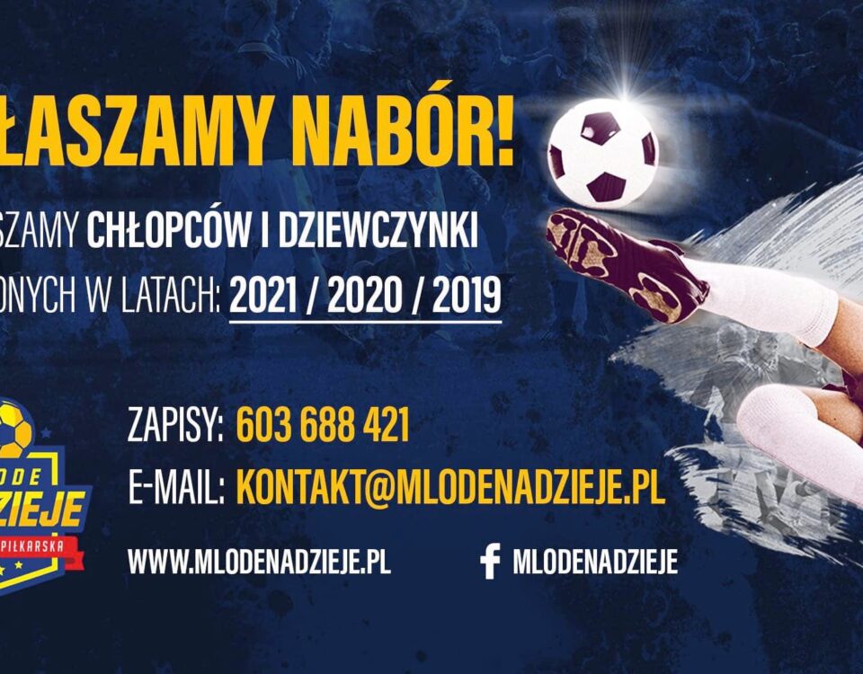 Zarząd Klubu wraz ze sztabem szkoleniowym Akademii Piłkarskiej „Młode Nadzieje” ogłasza, nabór do grup młodzieżowych naszej akademii. Nabór dotyczy roczników 2018-2021. Prowadzony jest również nabór bramkarzy […]