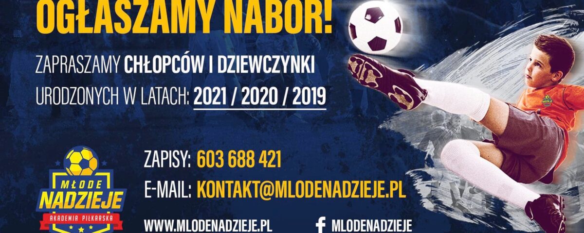 1 lipca 2025Zarząd Klubu wraz ze sztabem szkoleniowym Akademii Piłkarskiej „Młode Nadzieje” ogłasza, nabór do grup młodzieżowych naszej akademii.